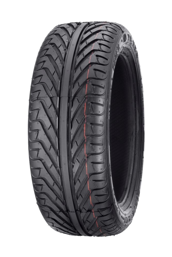 Opona V8 została stworzona z myślą o dynamicznej jeździe po asfaltowych drogach w letnim sezonie. Jej charakterystyczną cechą są szerokie i głębokie kanały wzdłużne w bieżniku, które skutecznie odprowadzają wodę z powierzchni opony. Ten element jest kluczowy dla zapewnienia bezpiecznej jazdy, zwłaszcza w wyjątkowo deszczowe dni. Kierunkowy wzór bieżnika umożliwia osiągnięcie dobych właściwości trakcyjnych, co jest szczególnie istotne podczas pokonywania zakrętów i częstego hamowania. Opona V8 to doskonały wybór dla kierowców, którym zależy na osiągach, przy utrzymaniu niskiej ceny.
